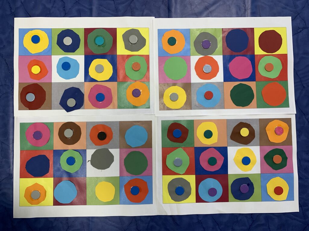 In 3er Gruppen mussten die Kinder gemeinsam einen Schneestern legen. Dabei galt es, das Prinzip der Symmetrie in Form und Farbe zu verstehen und umzusetzen. Die Aufgabe erwies sich schwieriger als gedacht und erst beim 2. Themenmorgen entstanden diese Kunstwerke.